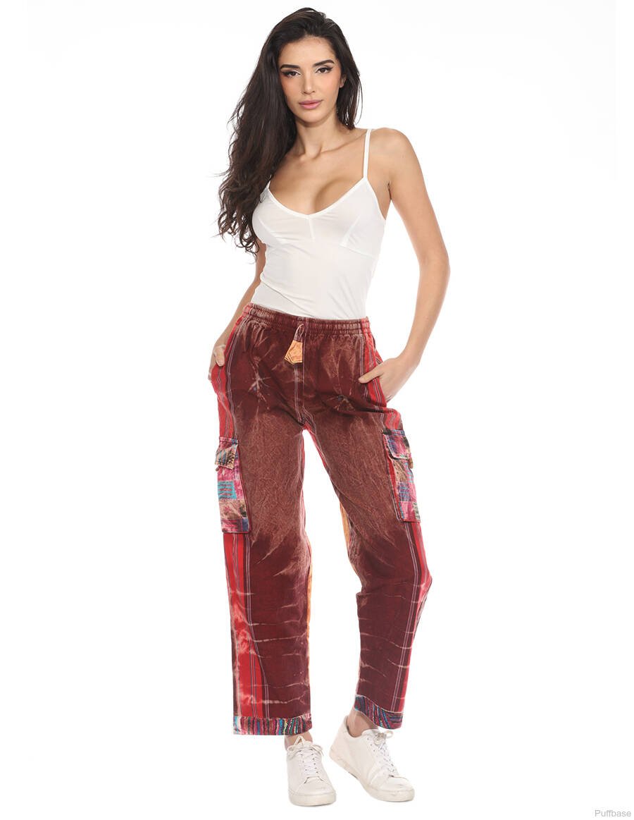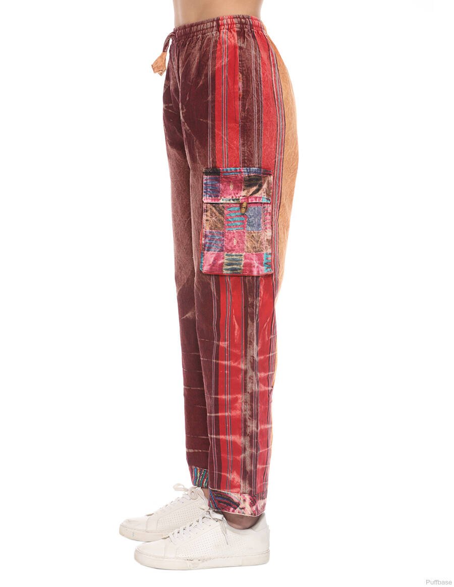 Cotton Stonewash Boho Hippie Unisex Pants Maroon XXXL