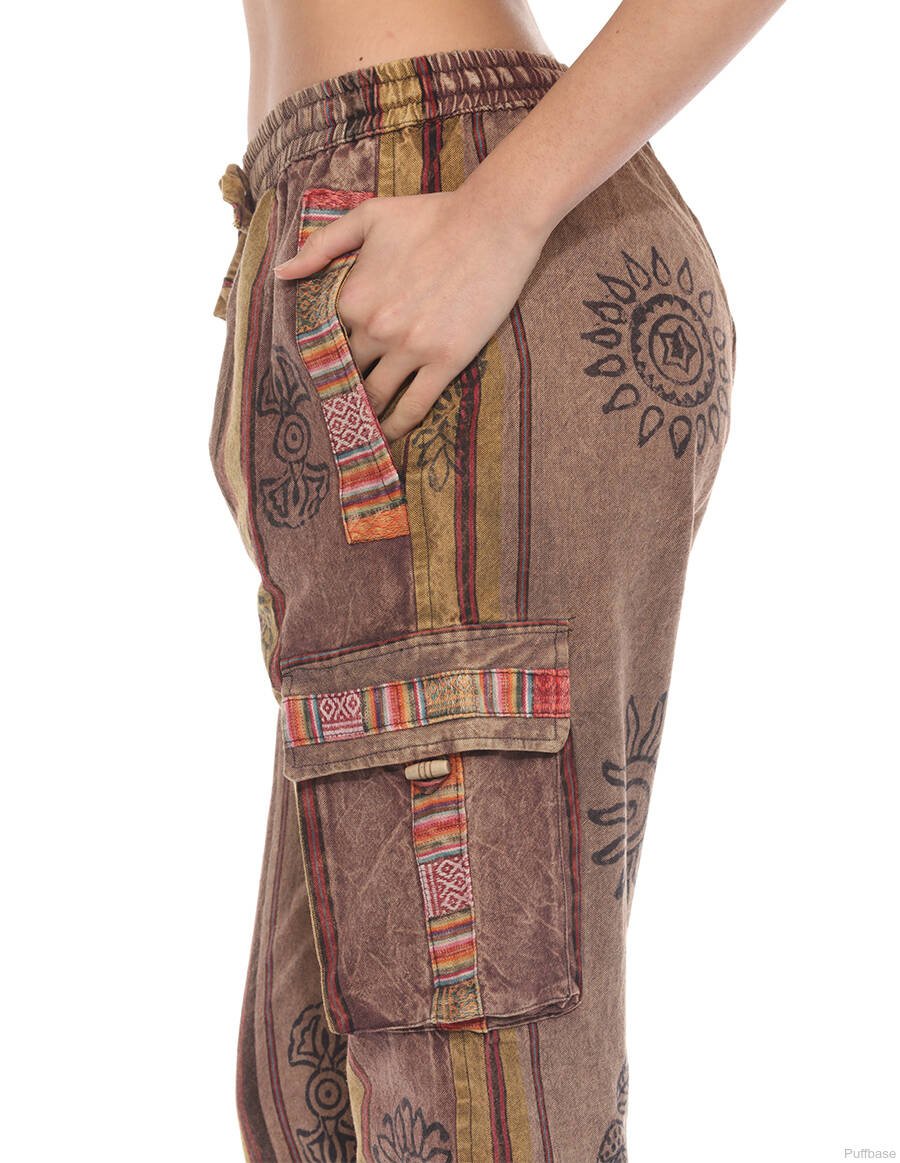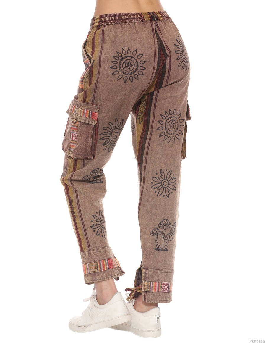 Cotton Washed Boho Hippie Genie Pants Brown S/M