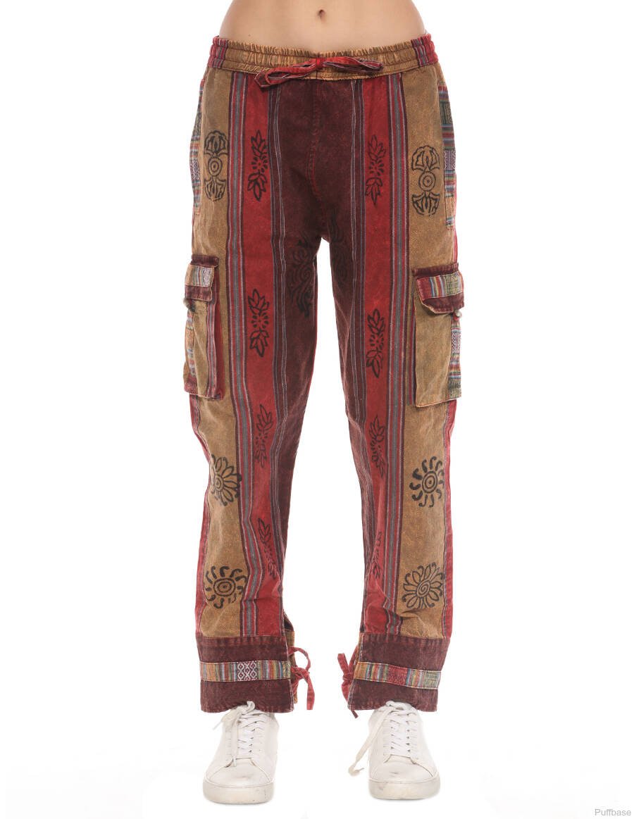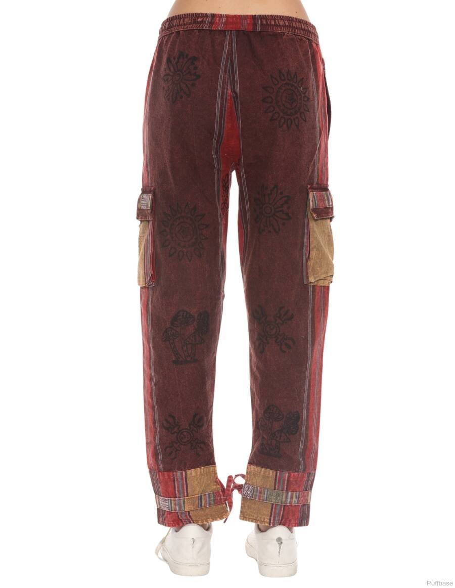 Cotton Washed Boho Hippie Genie Pants Maroon S/M