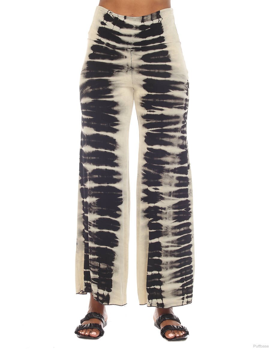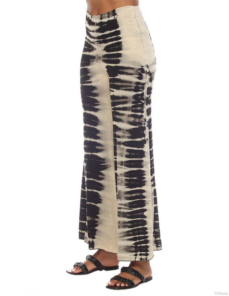 Tie Dye Boho Hippie Palazzo Casual Pant Black-Tan Small