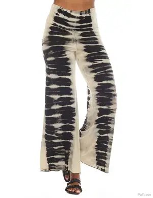 Funky bohemian palazzo pants featuring a tie-dye print and loose fit for a flattering look with effortless style. These can be work for a casual looks or for yoga, work out or outings.