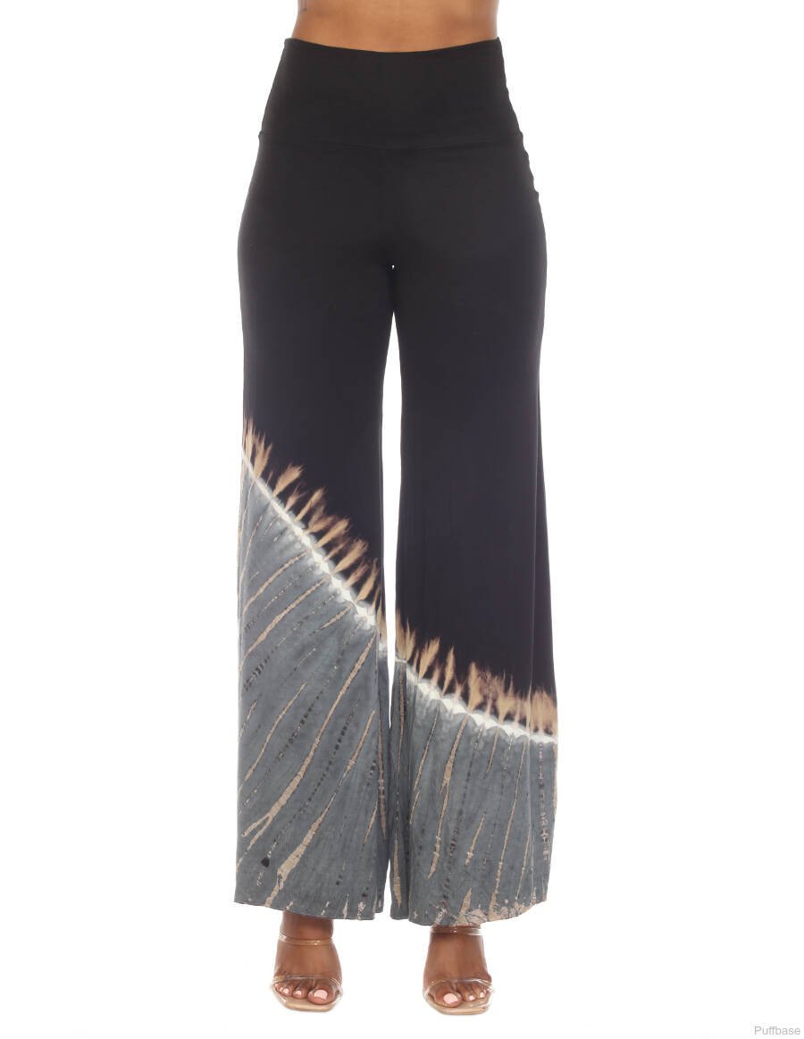 Funky bohemian palazzo pants featuring a tie-dye print and loose fit for a flattering look with effortless style. These can be work for a casual looks or for yoga, work out or outings.